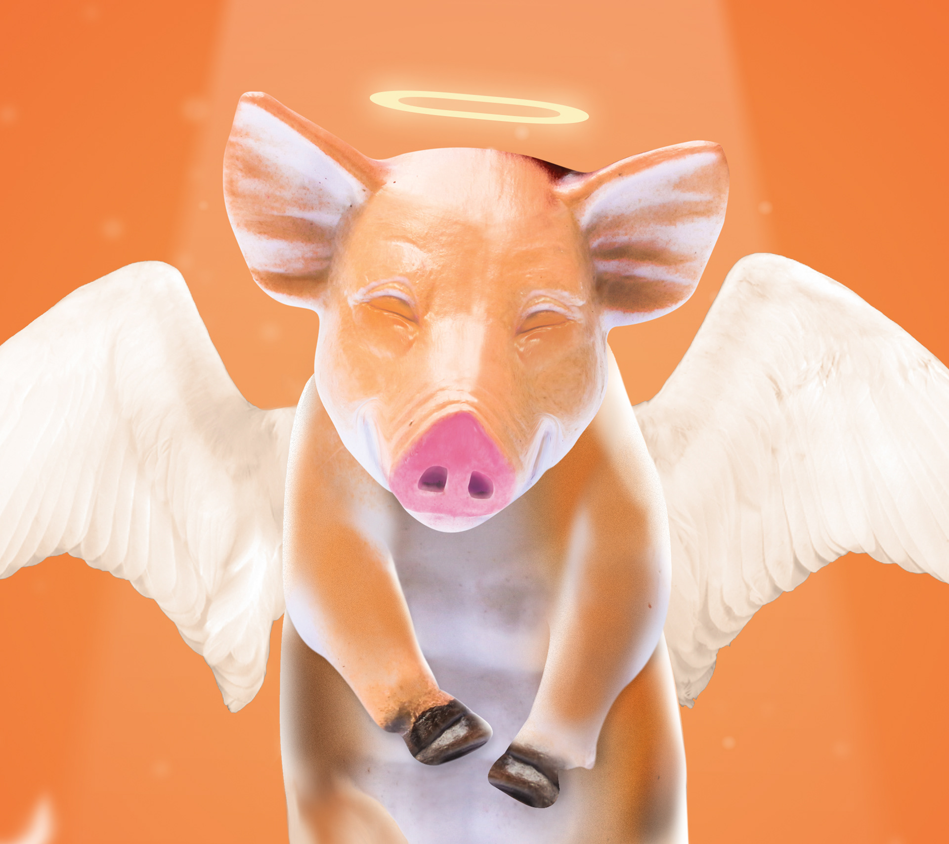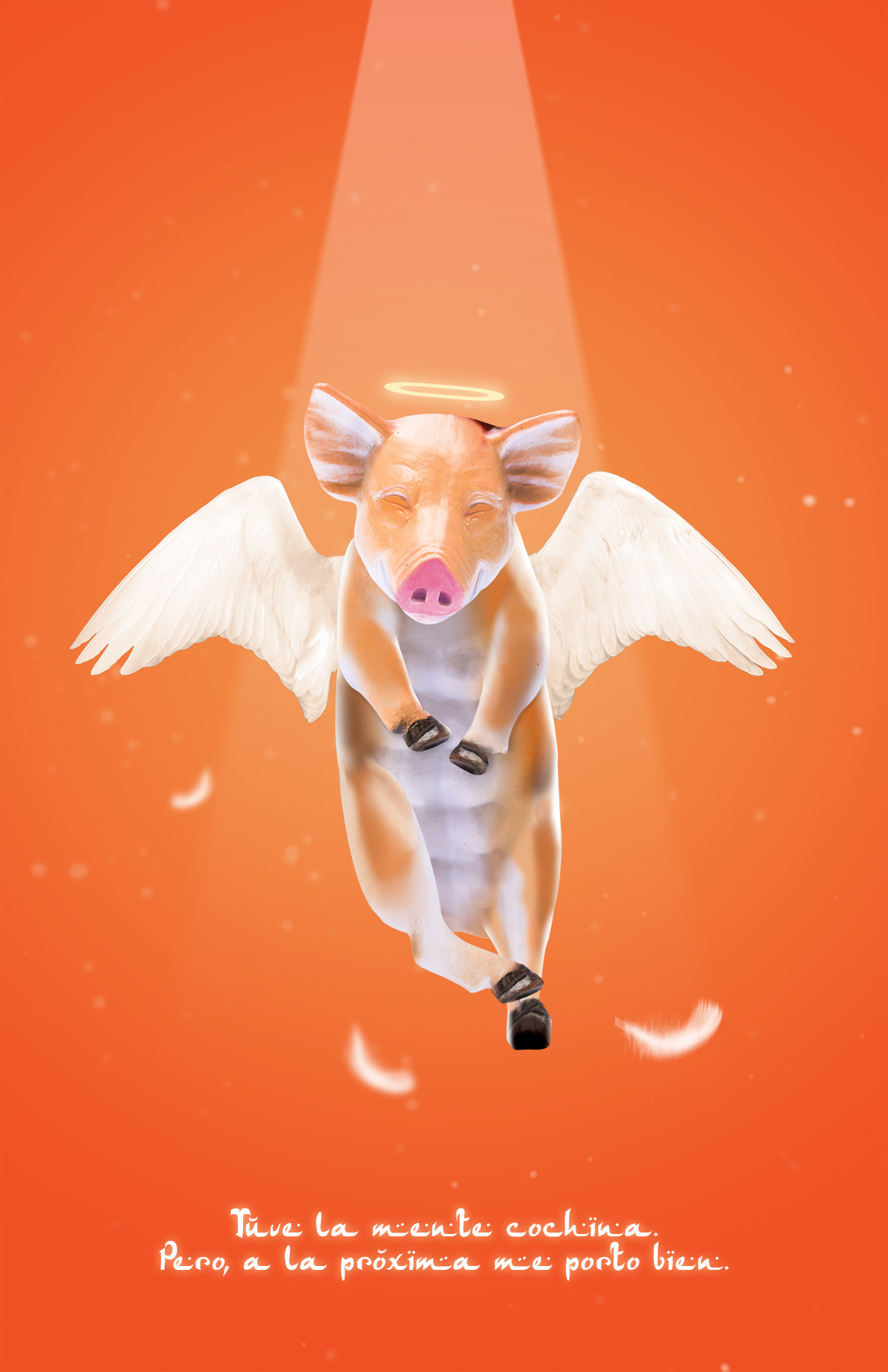 For the following project I was inspired by reencarnation believes, taking a humorous twist on it. I took elements from cultures such as the color orange for divine subjects and fonts. I also used wings and light to refer to death as used in America and combined the expression "you are such a pig" when people refer to people with dirty minds. So, here is the result, hope you enjoy.